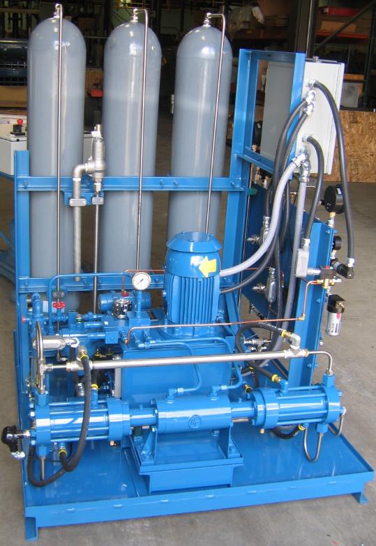 Hydro-Pac manufactures custom gas compressor systems for standard pressures of 10,000 to 60,000psig (70 to 400 MPa) for gas and liquid. Ultra high-pressure systems can also be provided for pressures up to 150,000 psig (1034 MPa). Many systems are also package with gas storage systems (pressure vessels).